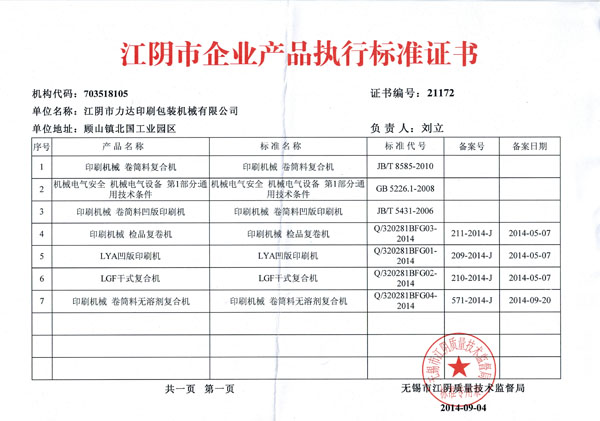 面對日益競爭激烈的市場,企業導入了先進的管理模式,引進中、高級技術人才和管理人員,不斷加大技術創新力度和開發水平,強化產品質量管理,推行并通過了ISO9001~2000質量管理體系認證,成立凹版印刷機械專業研究所,逐步建立健全了從研發設計、加工制造到銷售服務全過程完善的質量保證體系。公司先后榮獲"質量、信譽雙保障示范單位"和"技術創新十佳單位"。