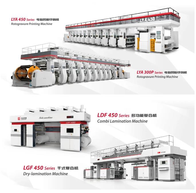 其中,公司最新研發的LDF450型多功能復合機以及LGF450型干式復合機受到了很多新老客戶的關注,該機型最高機械速度為450m/min,支持無溶劑/網線輥/半柔版/定點涂布等多種涂布方式任意切換,實現一機多用,可以為客戶節約更多的成本,實現更高的經濟效益。